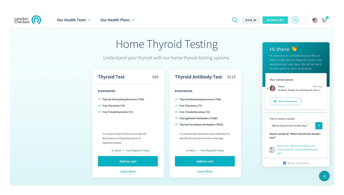 LetsGetChecked enables customers to purchase health tests to take in the comfort of their own home and order, manage, and track results online. For an important purchase like this, customers tend to have a lot of questions, such as which test they need to purchase, how to administer it themselves or how to interpret their results.