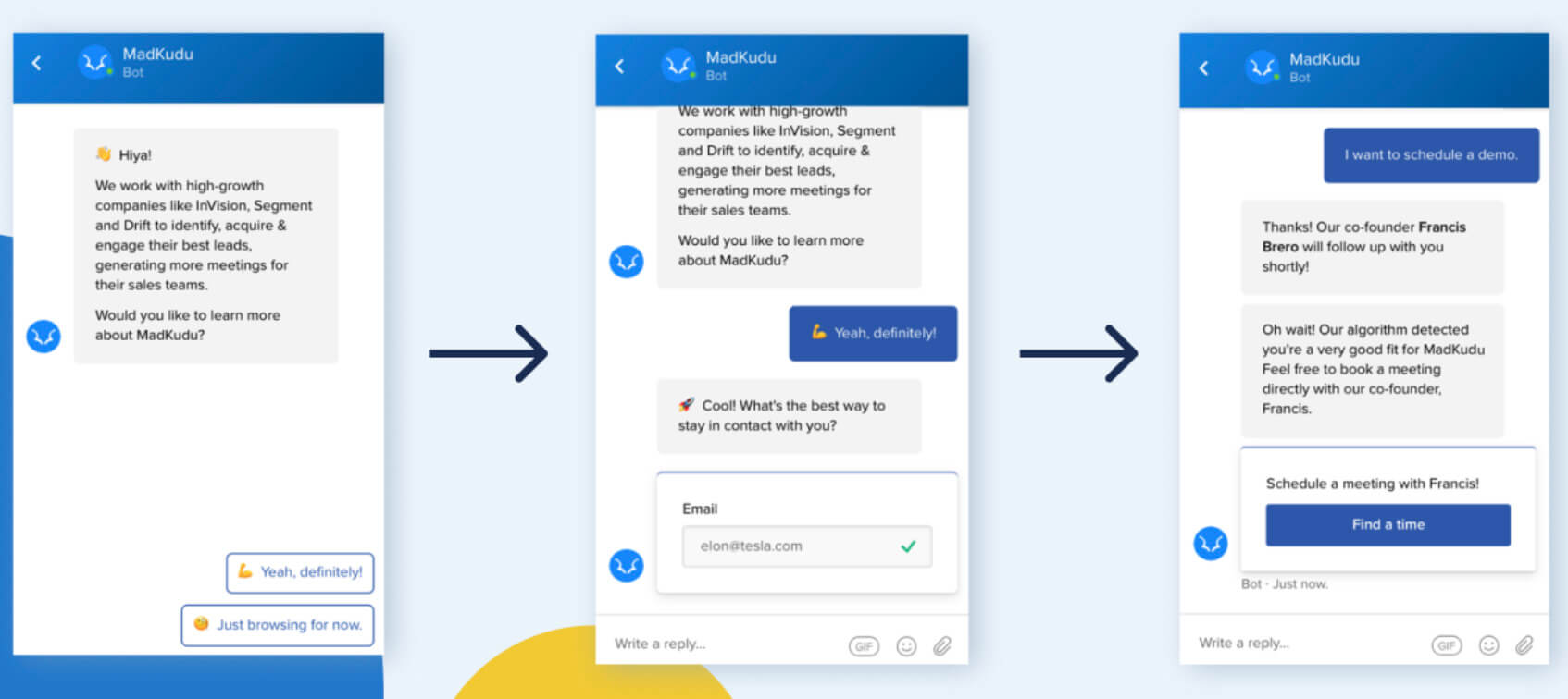 Typically, the criteria used for qualifying includes website activity, company details, available metadata, and lead-scoring specific to that company. It can also happen live while a lead chats with a rep on the messenger.