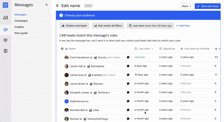 Initially, our sole focus was developing in-product messaging. Fuelled by our mission of “making internet business personal,” we wanted to make it easier for businesses to build personal relationships with their customers at scale. Our in-app messages and email messaging enabled companies to reach customers inside the product in real time, so they could deliver the right message, at the right moment.