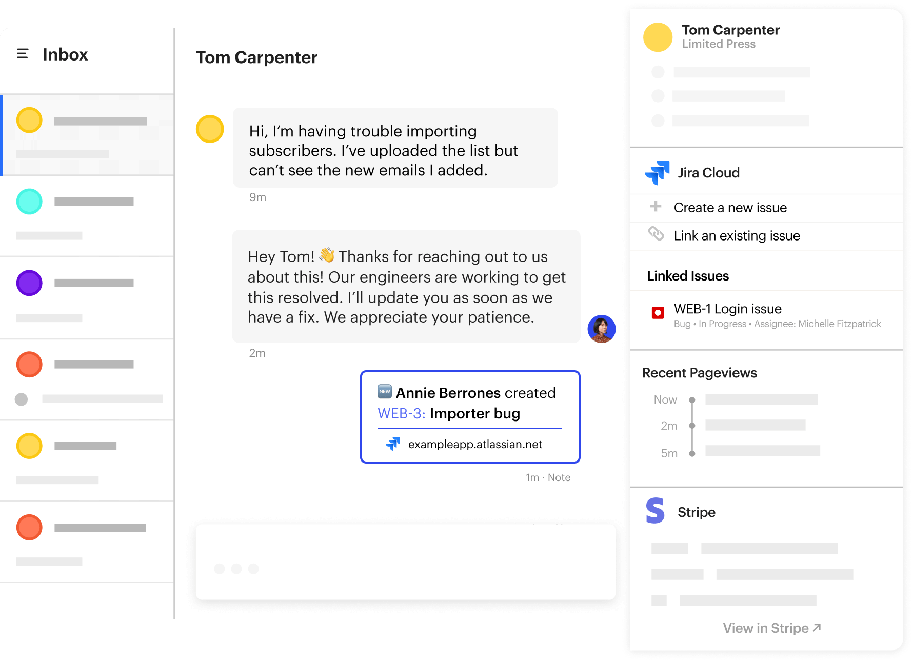 Jira Intercom Inbox app