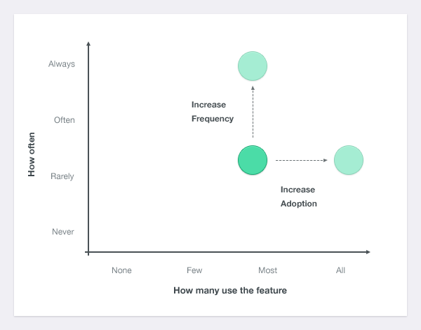 Adoption improvements target customers who don’t use a feature. For example, if you have a calendar feature that only half of your user base is using, an adoption improvement aims to win over the remainder. By adding ICS file import or a Google Calendar connection, you don’t improve it for all users…but you make it more likely that the non-consumers will now adopt it. When you hear phrases like “I’ll use this as soon I can...”, then an adoption improvement might help.