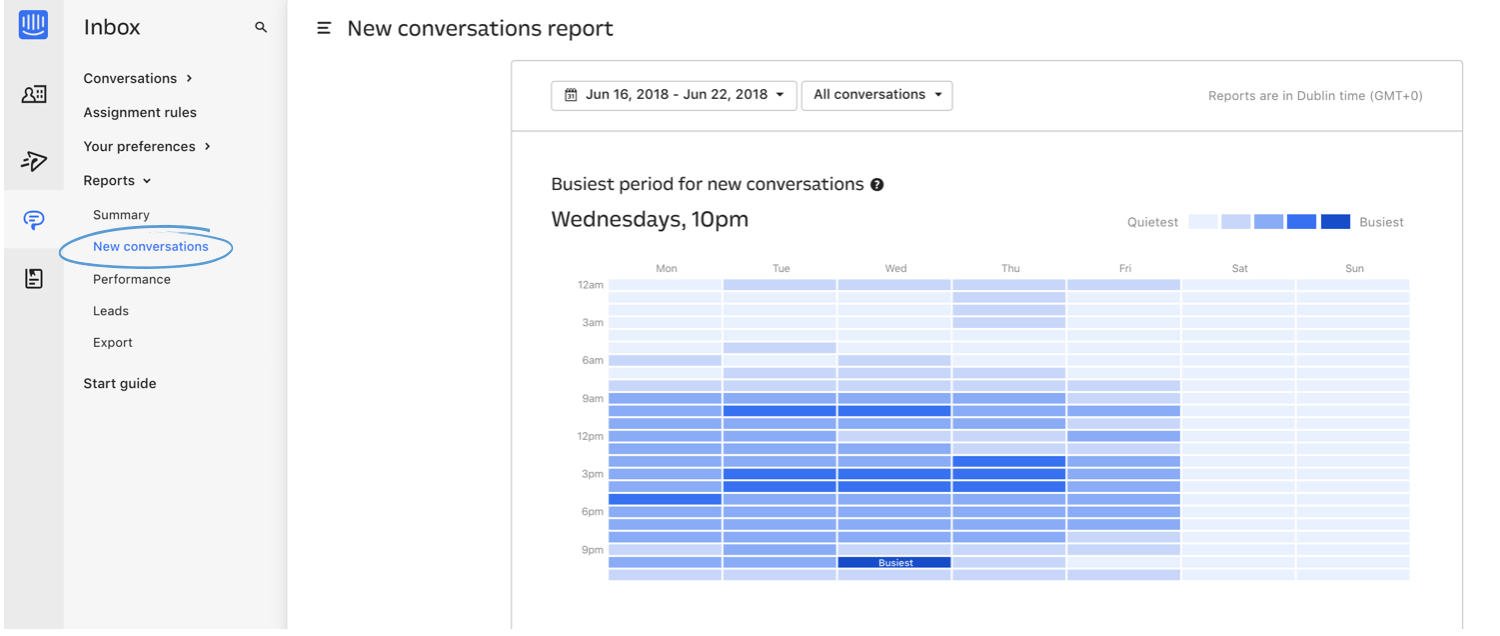 - The heatmap for new conversations will now be a sum of all new inbound conversations, rather than average. This makes the calculation consistent with the conversations heatmap displayed on the Performance report.