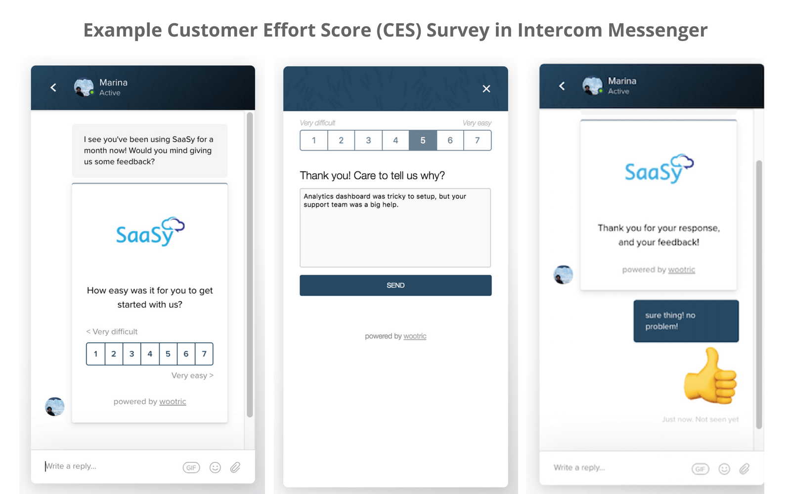 Ask your users a customizable Net Promoter Score (NPS), Customer Satisfaction (CSAT) or Customer Effort Score (CES) question, and optionally open conversations based on responses. Now, you can also segment your NPS, CSAT or CES in the Wootric dashboard based on Intercom user filters, so you can understand the “why” behind the score and prioritize projects that will improve customer experience.