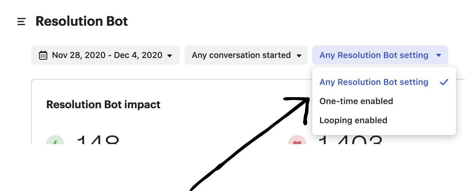 4. Better understand your Resolution Bot performance with The Resolution Bot report -We've added new reporting filters, so you will now be able to see metrics for just Looping, One-Time, or both.