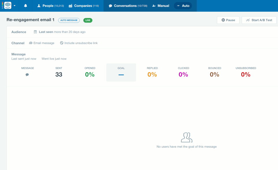 Goals within Intercom have helped us both simplify our messaging and achieve a great conversion rate on our campaign's call to action. The ability to constantly optimize directly within Intercom has been priceless!